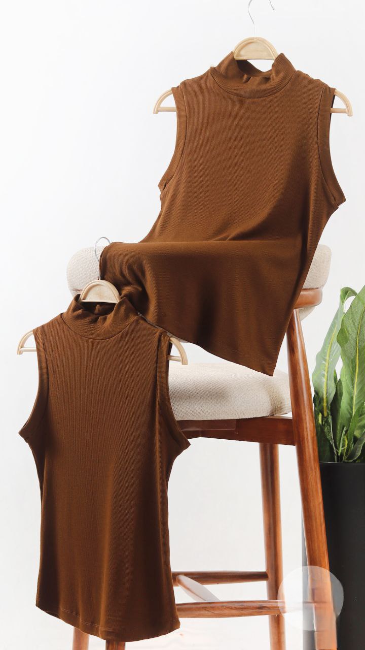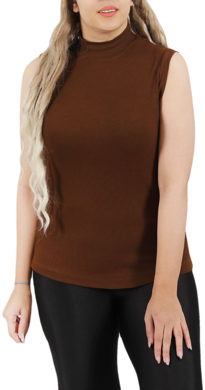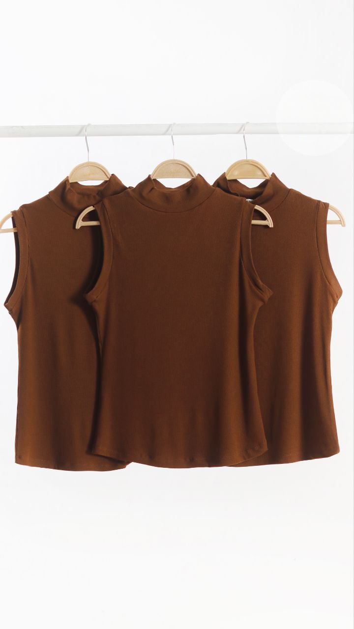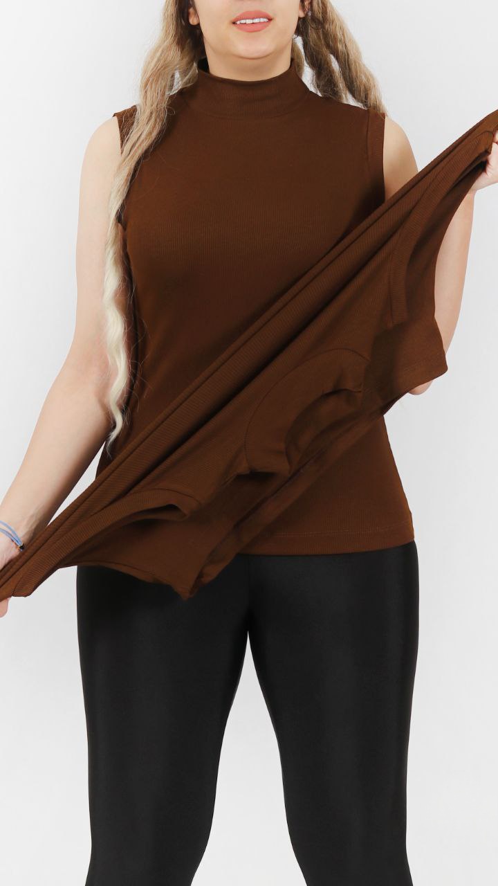 تاپ کبریتی یقه ایستاده برشکا تک رنگ قهوه‌ای